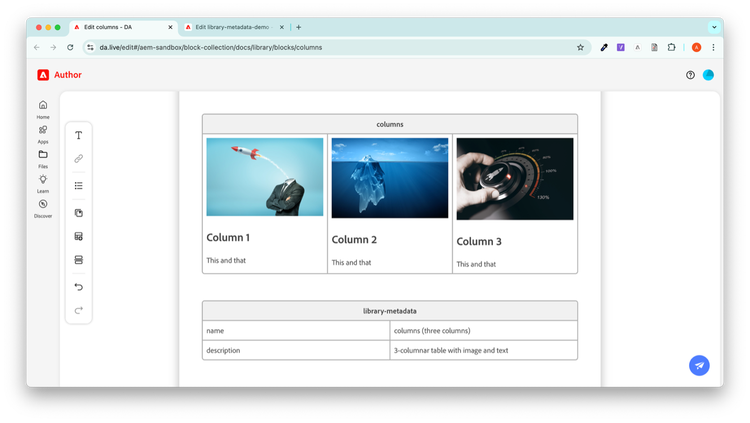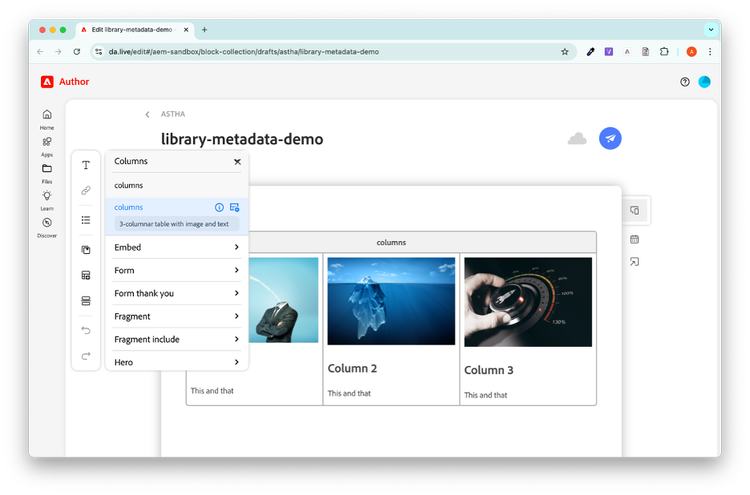 By setting up a library for blocks, placeholders, media, and more you can help authors find the right content to insert into your documents.