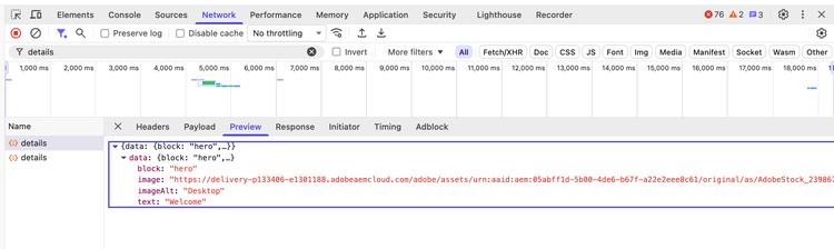 A hero block typically contains an image, heading, and text. See the hero.json reference for a complete example.