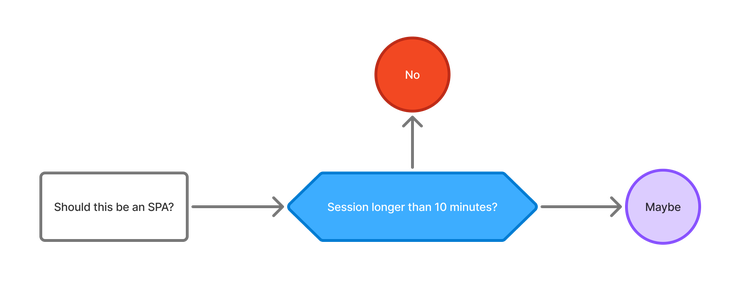 The overwhelming majority of Edge Delivery projects do not need SPA frameworks to deliver their site. For highly interactive authoring applications (like DA itself), they can be beneficial, but it's important to not go overboard. The following is a helpful diagram to help you decide if you should use an SPA framework or not.
